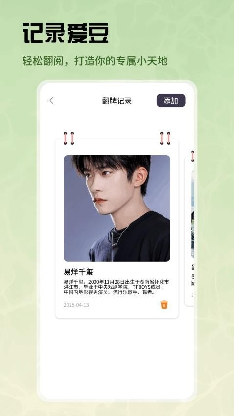 4、查看所有记录的爱豆信息,并能轻松翻阅,还能删除不需要的内容。