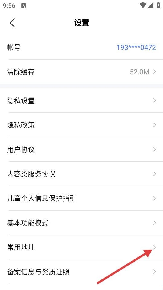 2、在设置界面中,点击【常用地址】选项以进入我的收货地址页面。