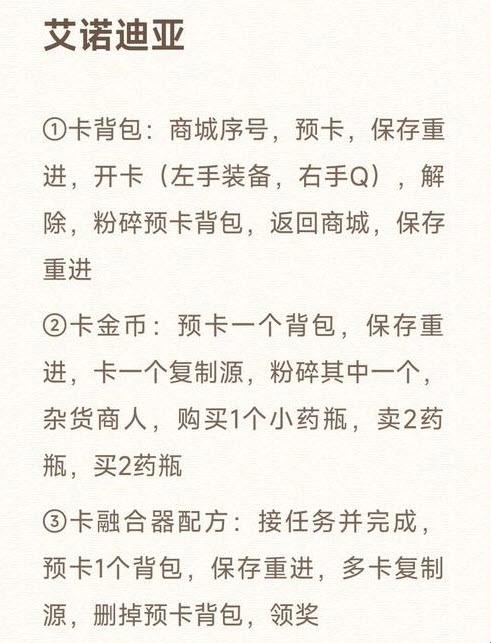 3、卡融合器配方:接任务并完成,预卡1个背包,保存重进,多卡复制源,删掉预卡背包,领奖。