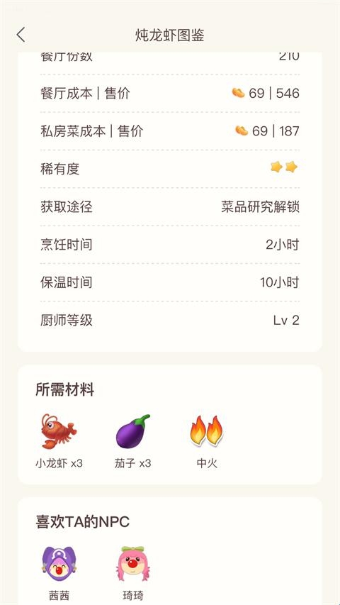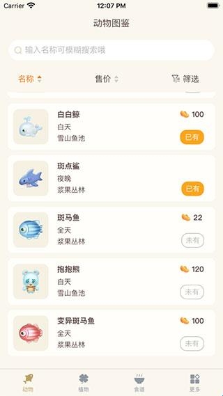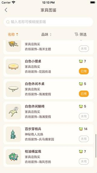 1、软件中有全面的图鉴数据,植物,食谱,家具,2265服饰等所有的详细信息。