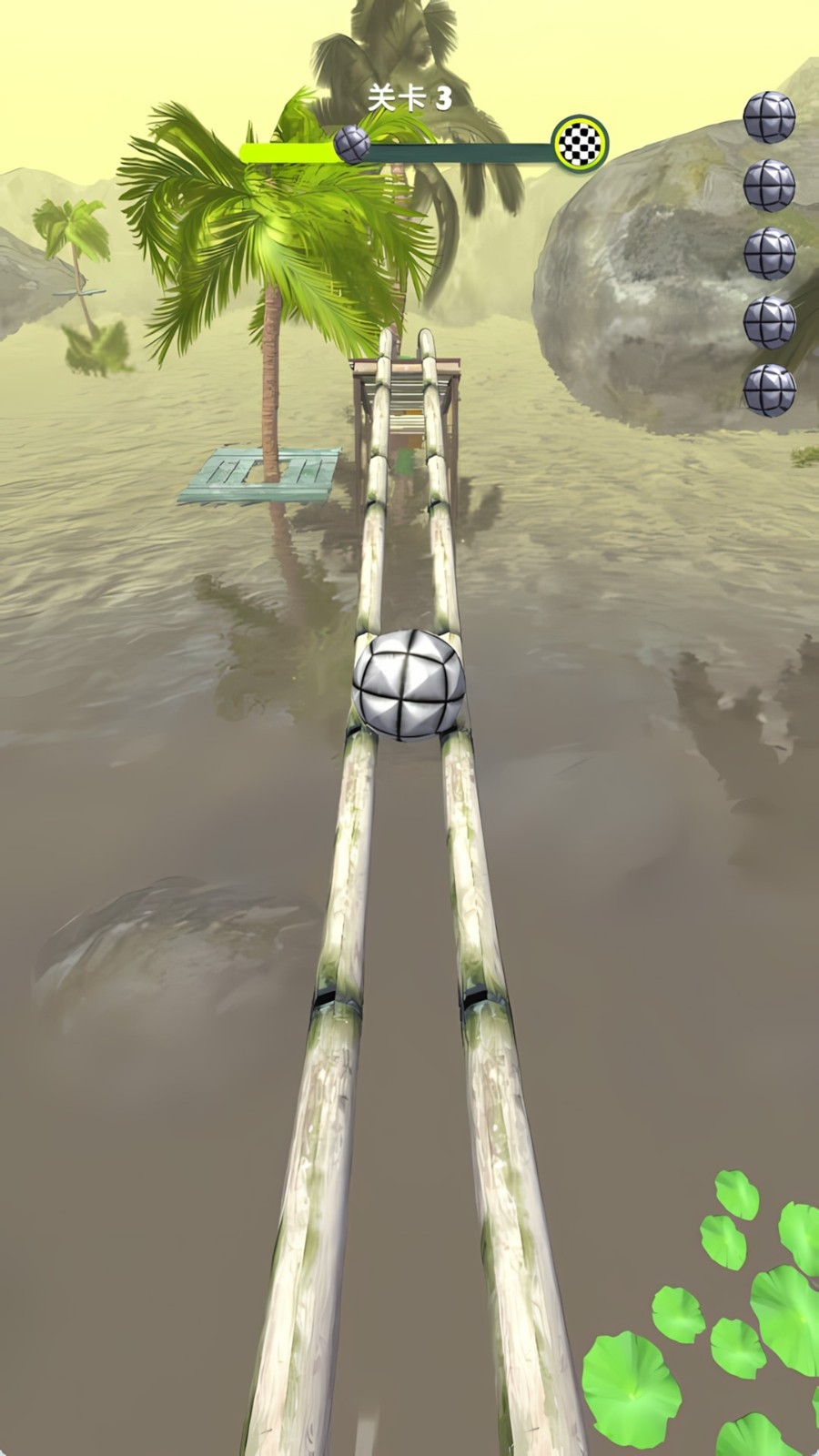 2、赛道沿途散落各类道具,拾取后触发对应特效,弹跳道具能增强小球跳跃高度,轻松跨越宽沟或高平台。