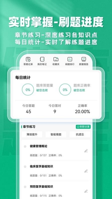 2、为用户提供很多高频考点和高频易错点,帮助你精准备战健康管理师的考试,快速提升考试的实力。