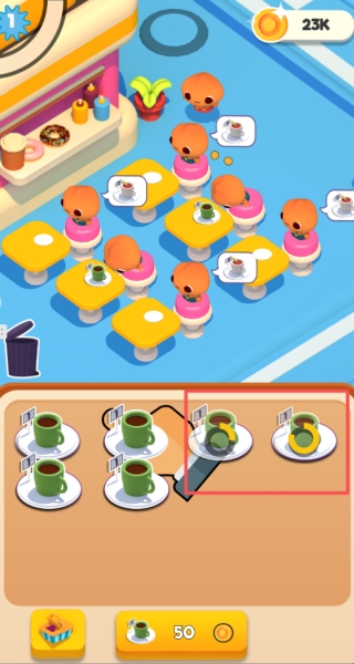 1、通过点击操作将对应的咖啡送到每位顾客的桌上,确保准确送达。