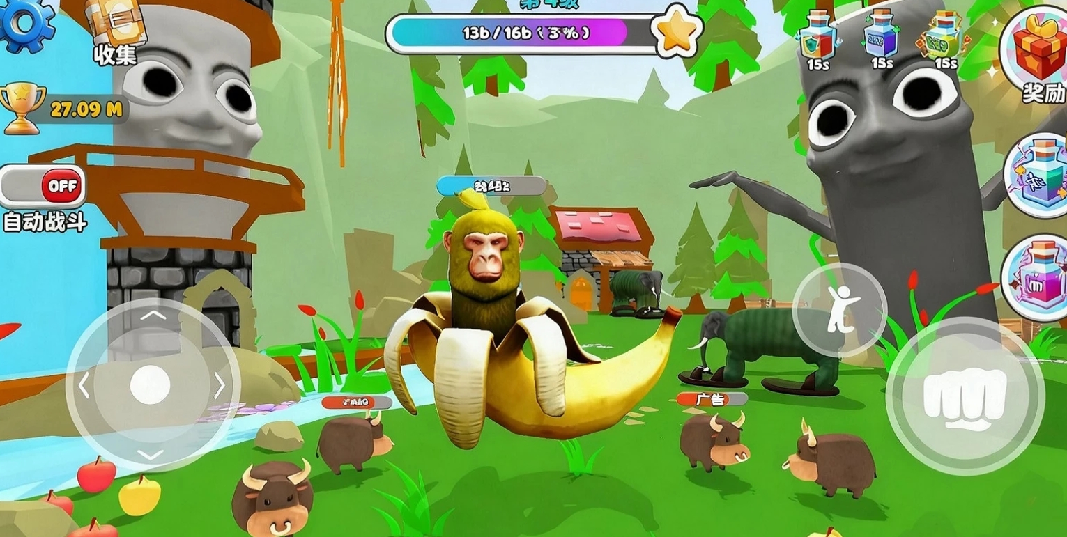 干饭进化大作战是一款关于动物进化的冒险游戏,其画风设计卡通,整体色彩感较为丰富。这里有我们最为熟悉的角色:木棍人,进入游戏之前,选择角色并开始你的战斗冒险,熟练操控它与敌人进行对决,不断提升经验值。当然,游戏内还会有更强大的怪物等着你,所以你要将你的战斗能力逐步提升,以便在对战过程中释放出高伤害!