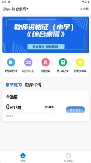 3、进入到app首页,可以看到模拟考试、随机训练、错题集等功能。