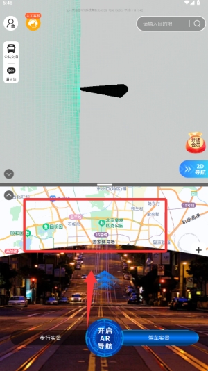 1、打开实景卫星导航软件,允许定位权限,首页会一键锁定你的位置,并显示周边的实景地图画面。