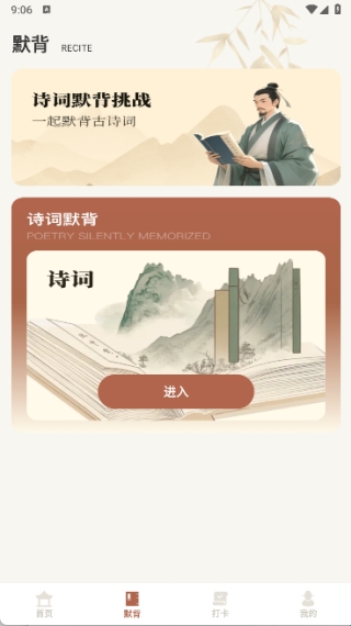 1、在首页中提供了唐诗、未词、元曲、诗经、乐府等内容,同时了解各类古诗文: