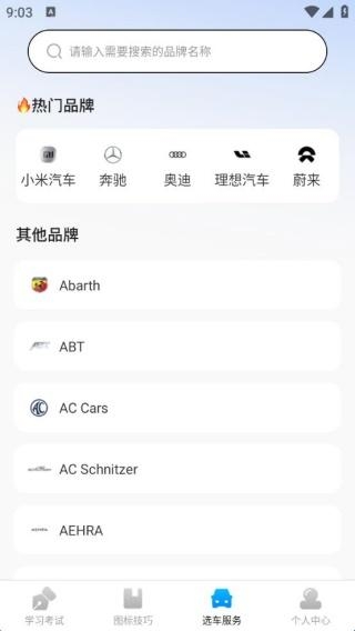 4、选车服务有热门品牌提供,各种汽车品牌都是可以看到。