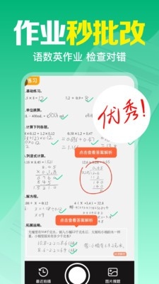 2、精准批改功能,覆盖语文、数学、英语三大学科,自动定位错误并提供详细解析。