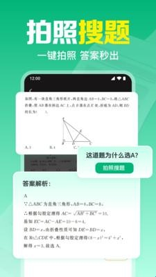 3、拍照查题的便捷性,使学生能快速获取答案,节省时间,提高学习效率。