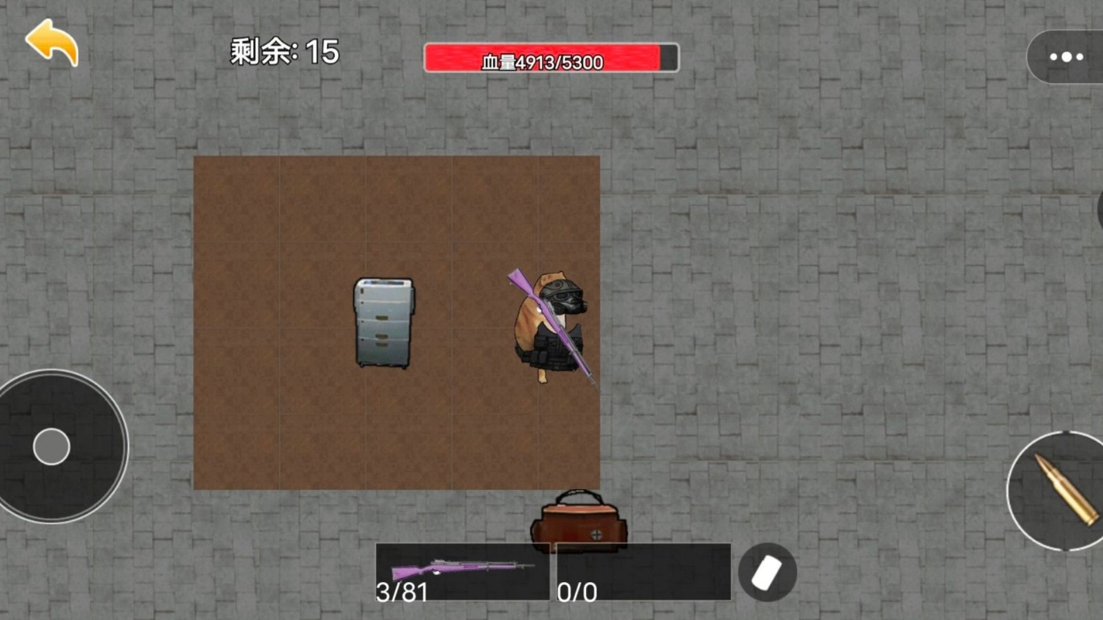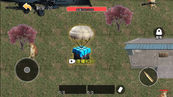 5.使用左侧的虚拟摇杆控制己方狗狗的行动,搜集各种武器升级装备,将地图中的敌人击败才能够获胜!