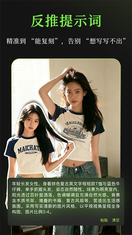 2、反推提示词:支持用户上传参考图片来反推提示词,使用提示词来制作想要的风格灵感图片。