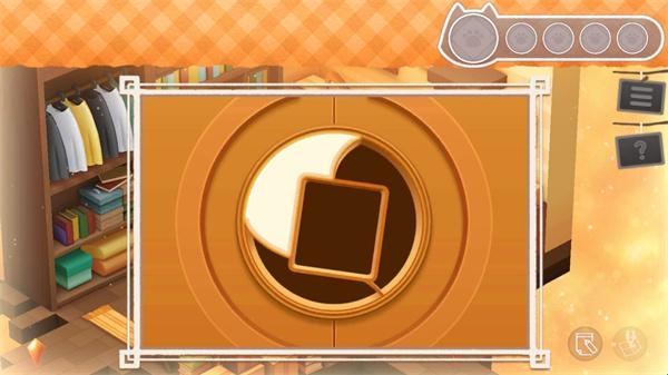 从桌上拿走猫咪饼干,放入鸟巢(按颜色顺序“粉蓝黄红”)吸引鸟儿获得第一块碎片。