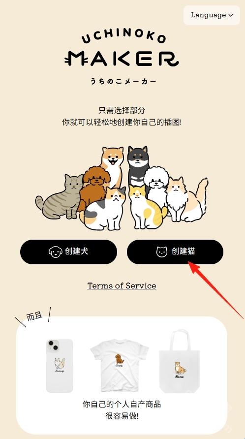 1、选择自己要创建的猫或狗形象,点击对应的创建按钮。