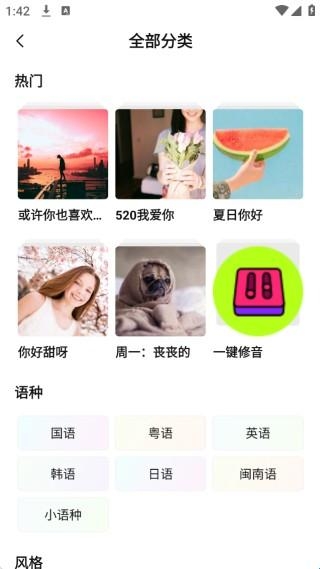 3、在分类中,有着热门、语种、风格等各样详细的歌曲类别,找到你想要演唱的曲目。