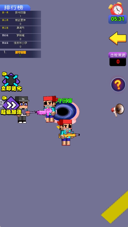 1、选择经典模式开始游戏,系统将匹配多名对手同场竞技,通过滑动屏幕控制黑洞移动。