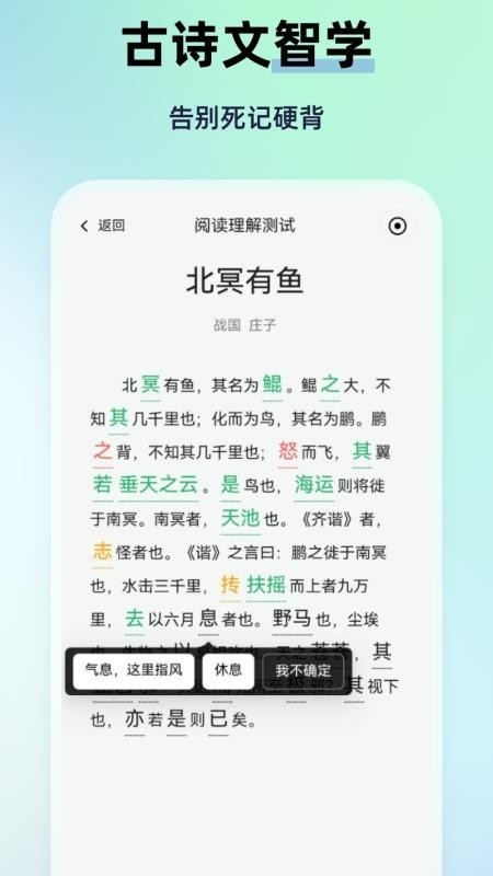 4、诗词测试:强大的古诗词阅读理解测试,帮助你能高效分析自己的古诗词情况,便于学习;
