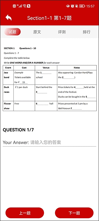 2、剑桥雅思真题。搜集了剑桥雅思5-11的全套雅思听力真题,并全部配有相应解析,逐一解决所有听力困惑。针对不同英语程度的学习者提供“显示原文,显示原文和题目,只题目”三种学习模式,并可以随意切换;