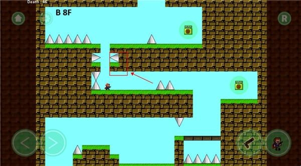 6、在边缘起跳,一直向前跑,后面有尖刺追来,来到我这个位置往回跳,前面也会有尖刺升起。