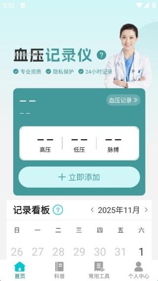 2、打开应用,首页即呈现简洁明了的记录界面,方便您随时输入血压血糖数值,记录健康点滴。