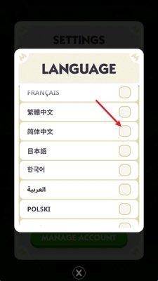 3、之后选择language,找到简体中文后重新加载游戏即可成功切换。