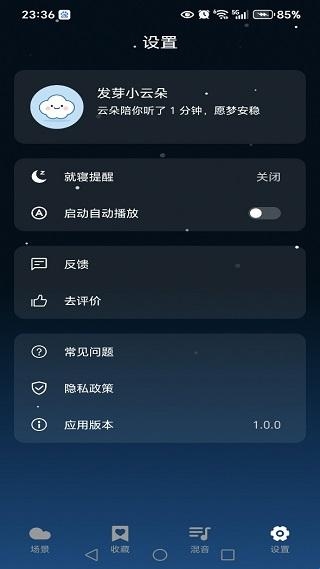 4、在设置页面,支持入睡提醒功能,还能开启助眠音乐自动播放服务。