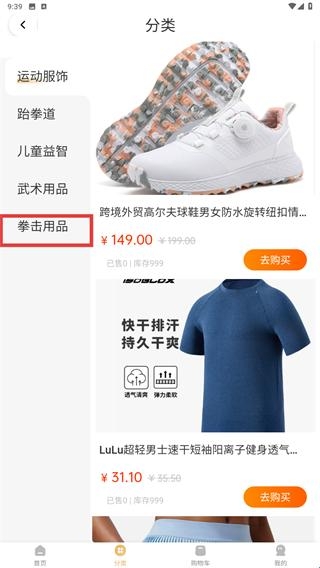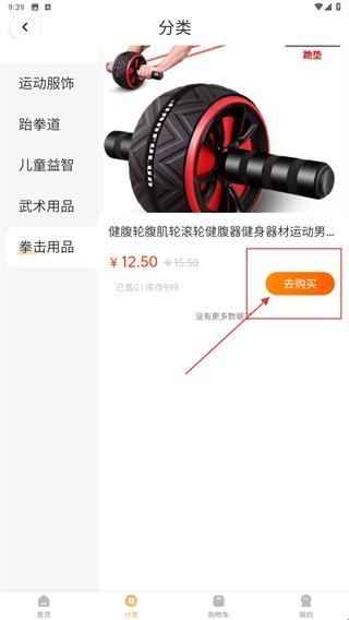 2.在分类页面选择【拳击用品-分类标签】,查看对应商品列表。