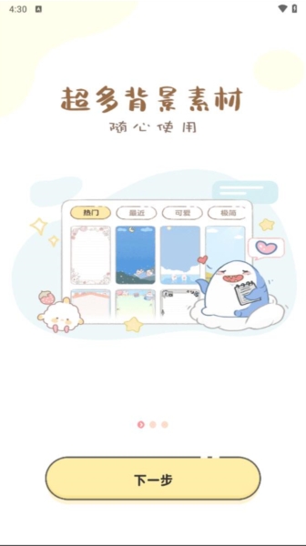 2、内置超全小清新素材库,贴纸、胶带、背景等分类细致,随心排版,让日记更有趣味。