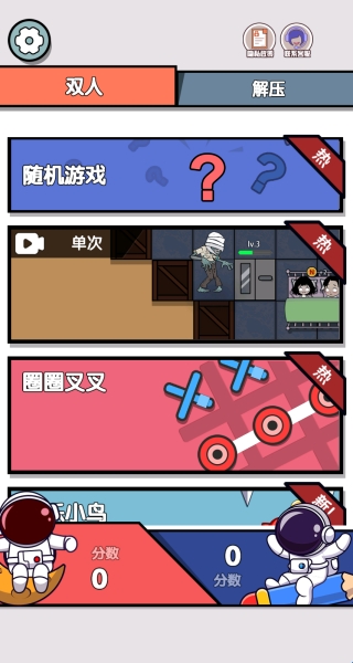 1、主界面提供多款支持双人对战的小游戏,可直接选择喜欢的项目开始游玩。