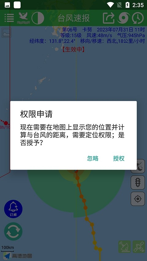 1、当我们想查看台风的风力时,可以点击给予软件的权限;