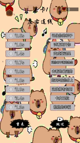 4.在歌词连线挑战中,点击画面左侧的音频,聆听之后连线右侧的歌词,让左右两侧匹配即可闯关。
