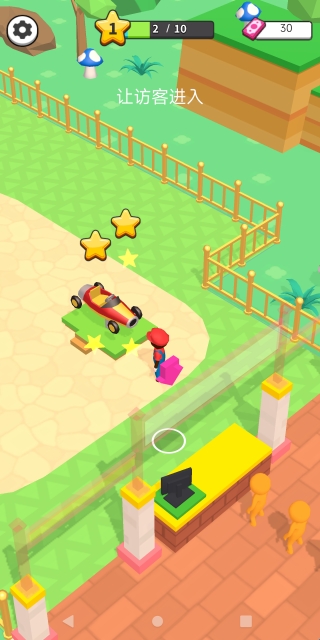 1.控制火柴人移动至指定区域完成核心操作,包括售卖门票、引导游客排队、检查游乐设备故障等,每个动作直接影响乐园运转效率。