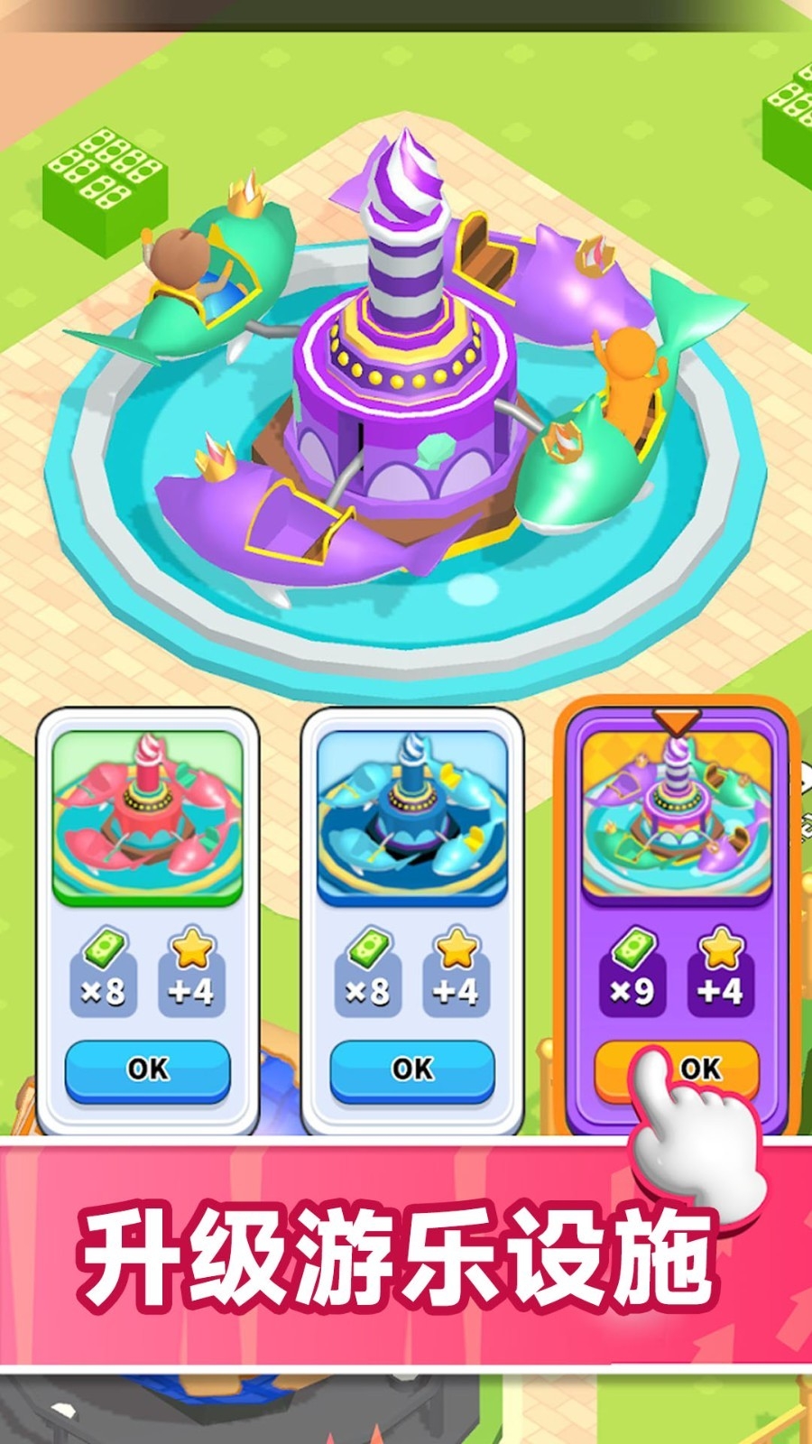 2.通过赚取的金币扩建园区,购买旋转木马、过山车等高收益设施,并定期维护以避免停机损失。需平衡收入与支出,优化资金使用效率。