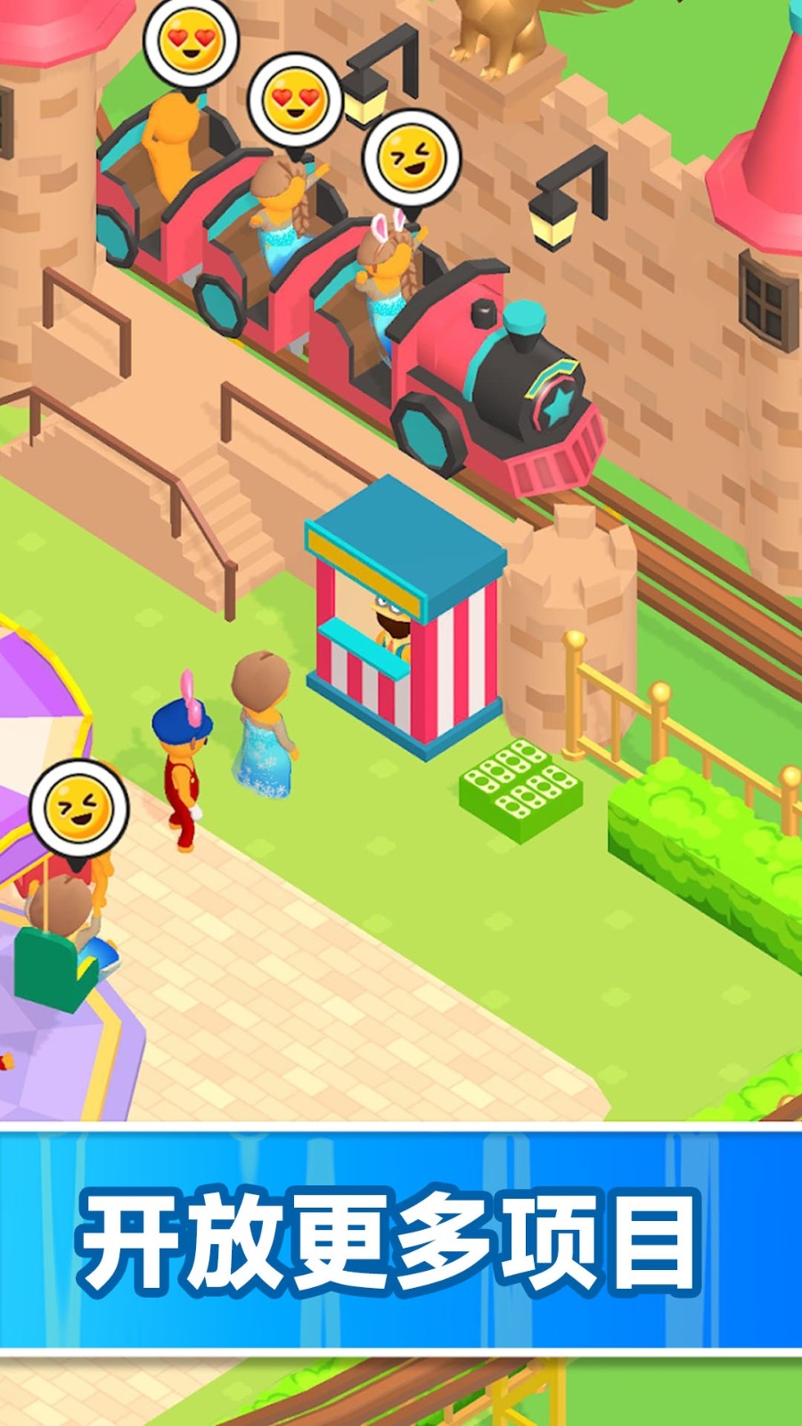 2.控制角色行动,解锁游乐园的服务台以及摇摇乐等初级设备。