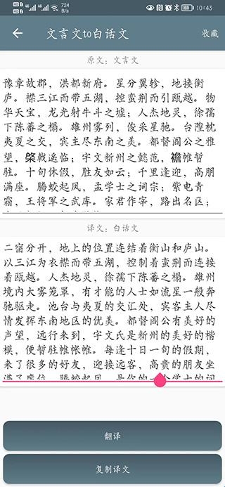 2、比如点击文言文to白话文,进入后可以看到一片文言文,点击下面的翻译;