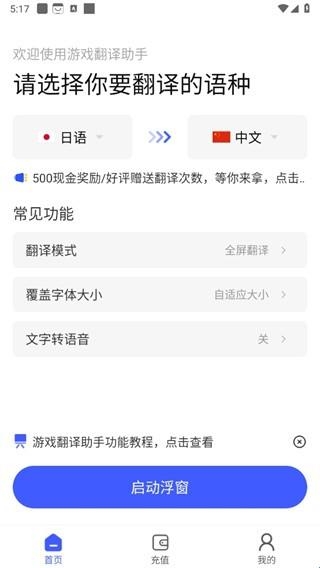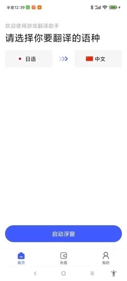 1、打开软件在首页中可以选择要翻译的语种,还可以开启浮窗;