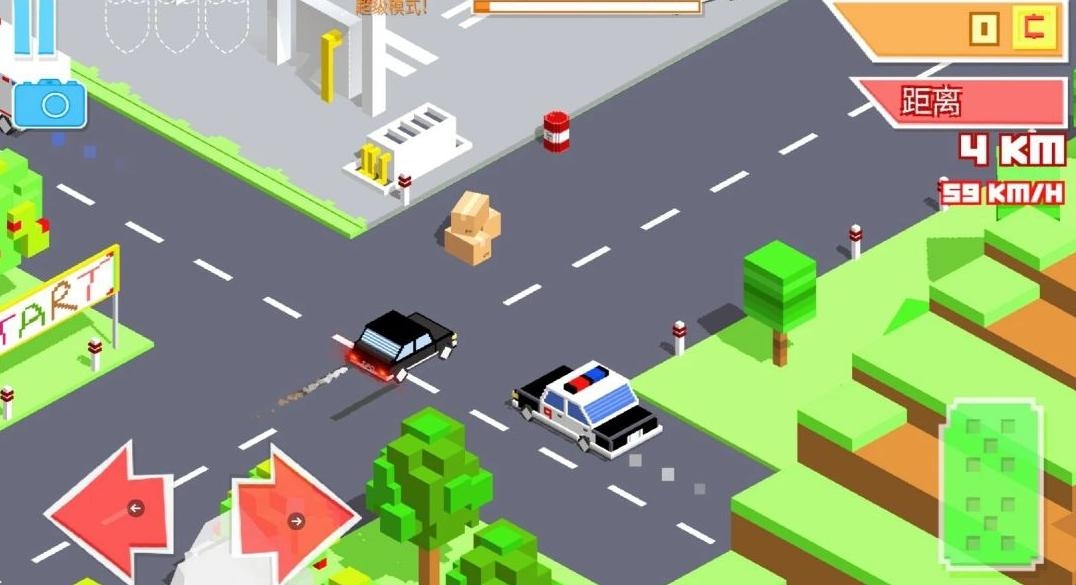 1、操控赛车在复杂赛道上疾驰,通过灵活转向躲避障碍、其他车辆及行人动物,避免引发追捕。