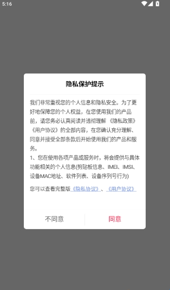 1、打开软件阅读“隐私保护提示”点击“同意”进入app