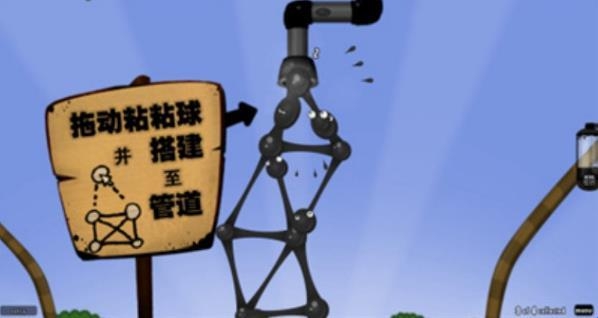 1、可以看到游戏中也有相应的提示内容,拖动粘粘球并搭建至管道即可;