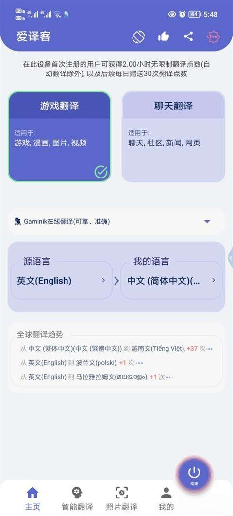 爱译客翻译官方版是一款能帮助用户轻松完成翻译的软件,支持的语种是非常多的,游戏、漫画、小说、聊天场景等都能轻松拿捏,在使用的同时还能学习到各种语音知识,让你轻松跨越语言障碍,沟通无限制,有需要的用户可以来下载!