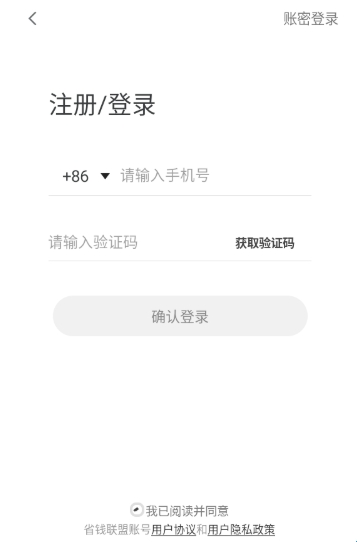 3、在注册/登录界面输入手机号与验证码后,点击“确认登录”按钮进入程序
