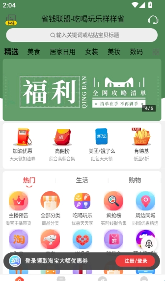 省钱联盟是为经常手机购物的朋友准备的一款省钱购物神器,该软件中为用户提供了海量优质福利活动,能够让用户以最实惠的价格买到最划算的商品,并且该软件中的每一款商品都是经过严格盛和和筛选出来的,而且还有专业的售后服务团队为用户服务。如果有对这款手机购物软件感兴趣的朋友,那就快来下载体验吧!