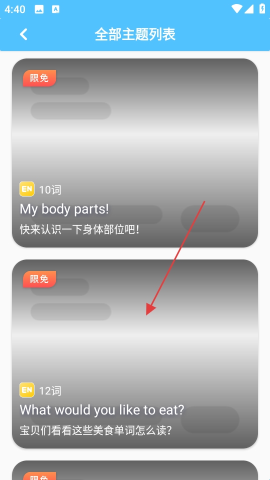 2、在全部主题列表中,选择你想点什么主题,进入该主题单词学习页。