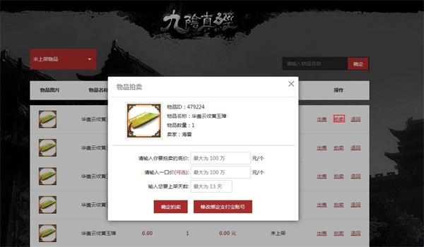 4、当有买家出价,且买家填写了一口价出售,出价价格等于或者大于一口价时,交易直接完成,物品发货。