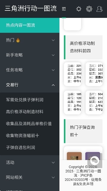 3、还提供了高价格浮动制造材料的前四名和热门子弹的查询前十推荐,获取更多的游戏资源。