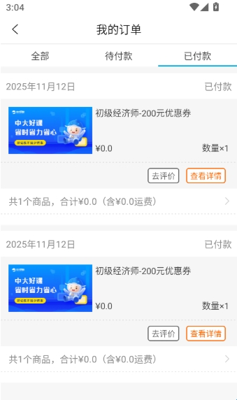 6、最后进入“我的订单”界面,点击“已付款”栏目后就可以查看所有的订单记录了