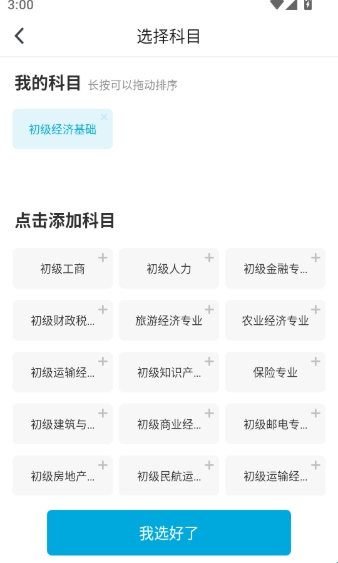3、之后进入“选择科目”菜单界面,选择和添加科目后点击“我选好了”按钮进入主界面