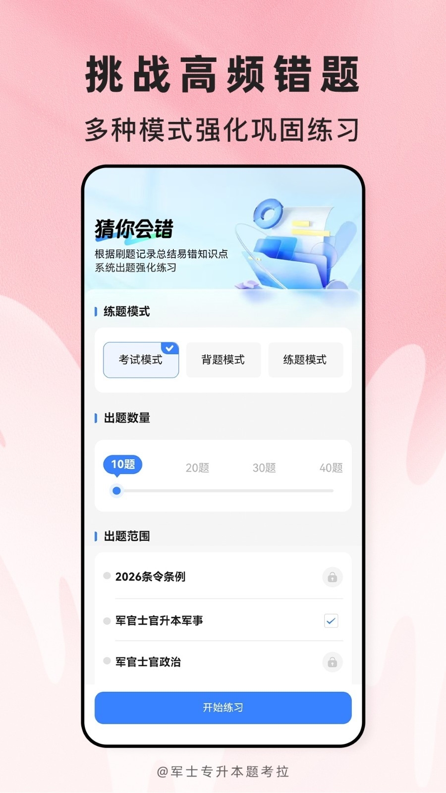1、拥有海量且优质的题库资源,涵盖军官士官升本军事、政治等多学科内容,知识点覆盖全面。