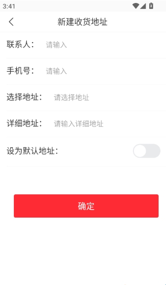 6、最后在“新建收货地址”菜单界面,输入联系人、手机号、选择地址、详情地址后,点击“确定”按钮就完成了