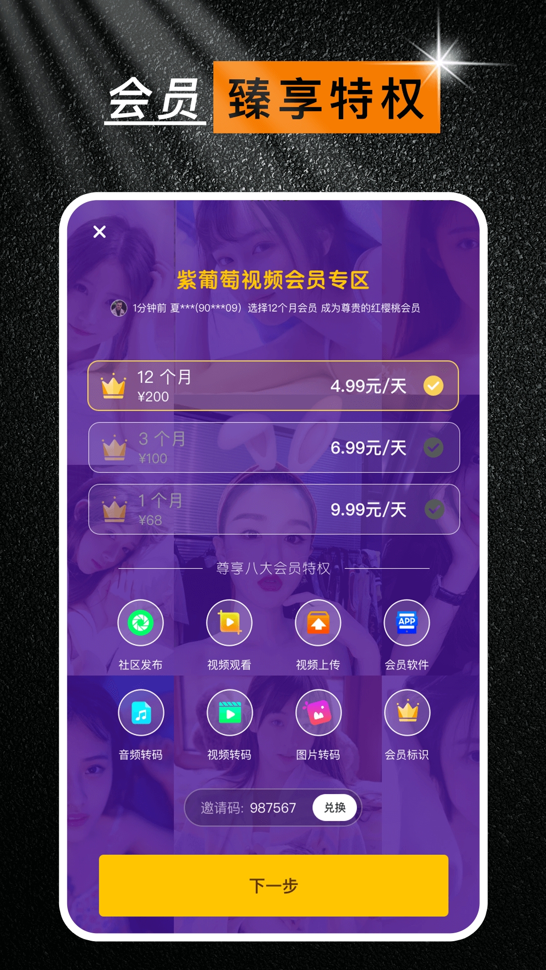 3、紫葡萄视频还推出了专属的活动和挑战,鼓励用户参与创作,展示自己的才华,增加用户参与度和粘性。